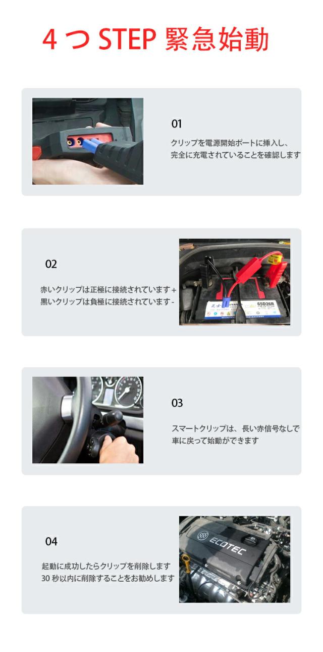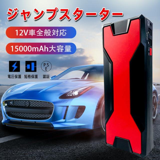 ジャンプスターター 12v 車用 スターター モバイルバッテリー 大容量 おすすめ エンジンスターター 車 バッテリー 車用バッテリー エンジン 緊急始動 キャパシタ 緊急 軽量 バイク 15000mAh PSE認証済 送料無料