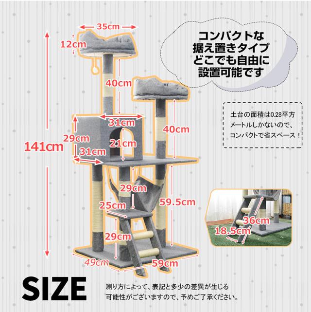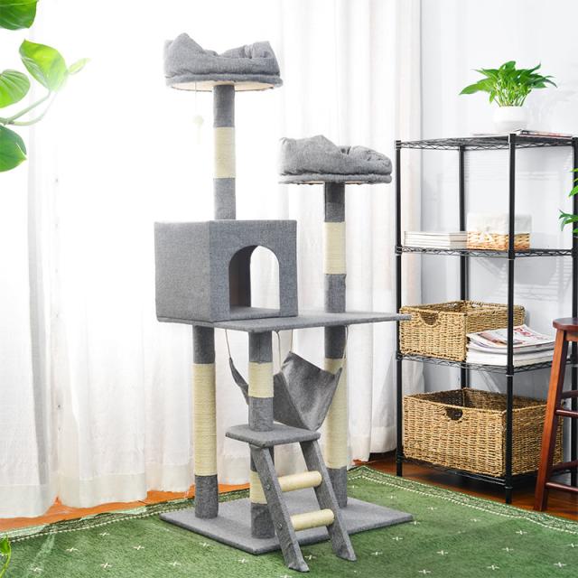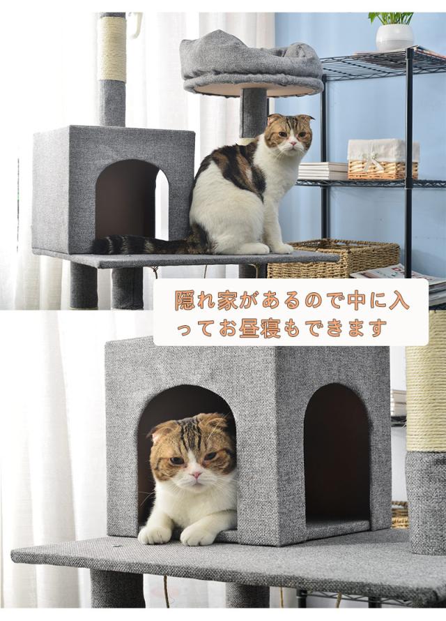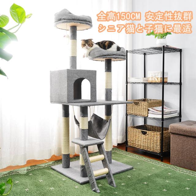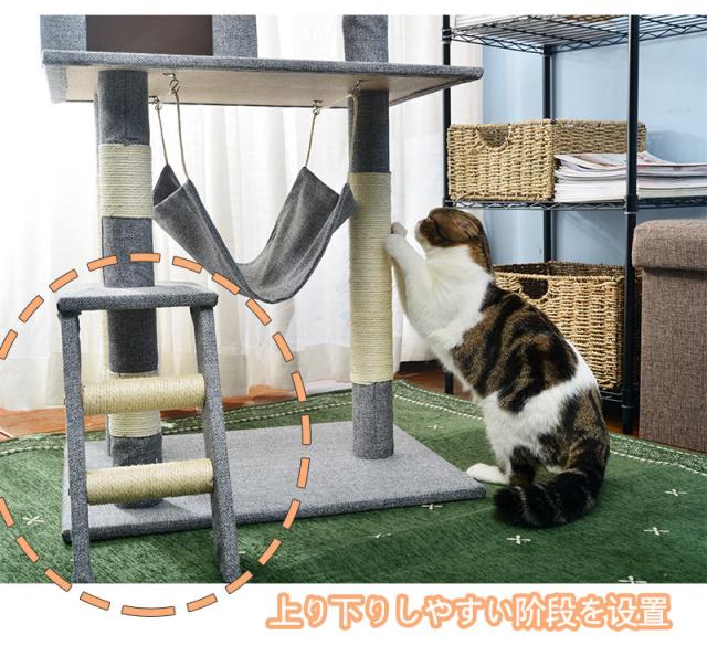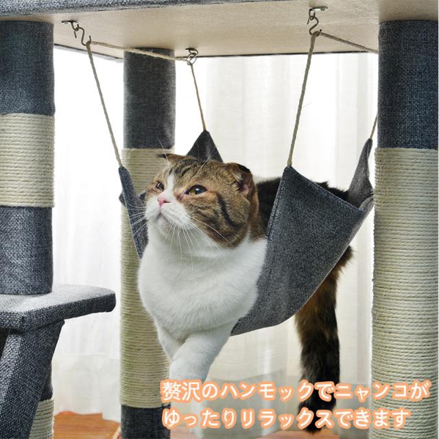 キャットタワー 据え置き シニア おしゃれ 猫用品 猫タワー ハンモック 麻紐 階段 梯子 キャットハウス 猫ベッド 隠れ家 爪とぎ 多頭飼い