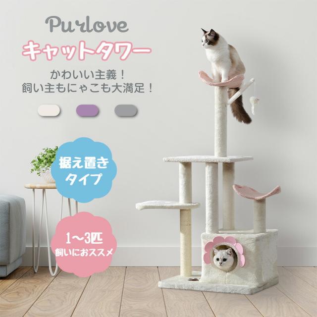 キャットタワー 大型猫 キャットタワー 爪とぎ おもちゃ ハウス 室内 据え置き 人気 運動不足 安定 かわいい 省スペース スリム 3色選択 送料無料