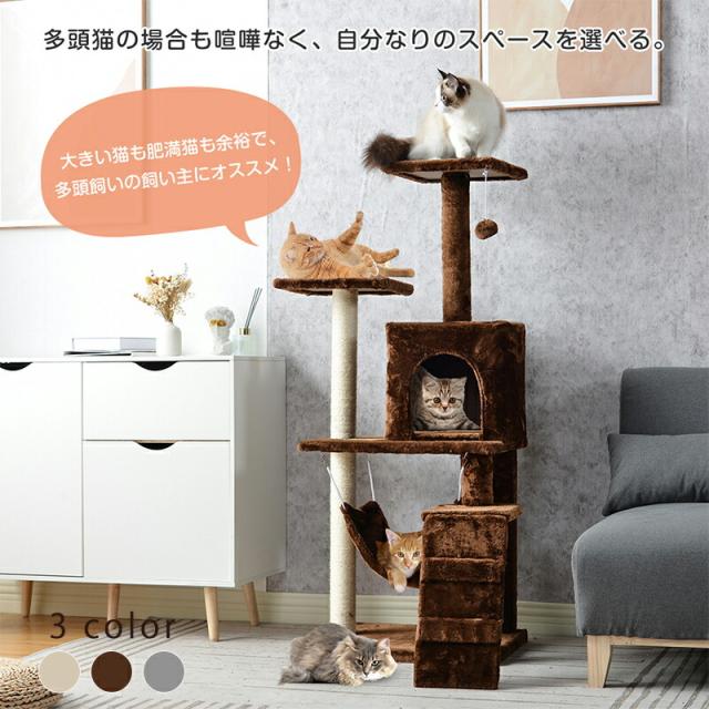 キャットタワー 大型猫 キャットタワー 麻紐全高126cm ベージュ 据え置き おしゃれ 猫 タワー ねこのおもちゃ 運動不足解消 広い見晴らし台 多頭飼い 安定性抜群