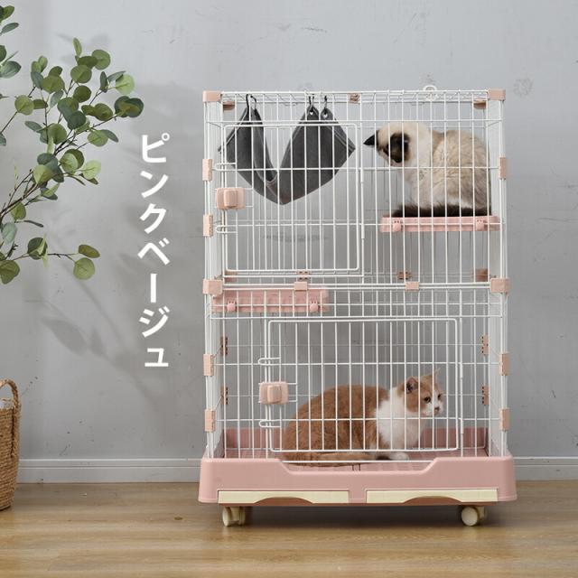 猫 ケージ ハンモック付 引き出し式トイレ キャスター付き キャットケージ 2段 猫 猫ゲージ おしゃれ キャットハウス ネコ ハウス 多段 留守番 保護 脱走防止 多頭飼い 多頭 スチール ペットケージ