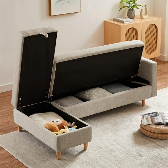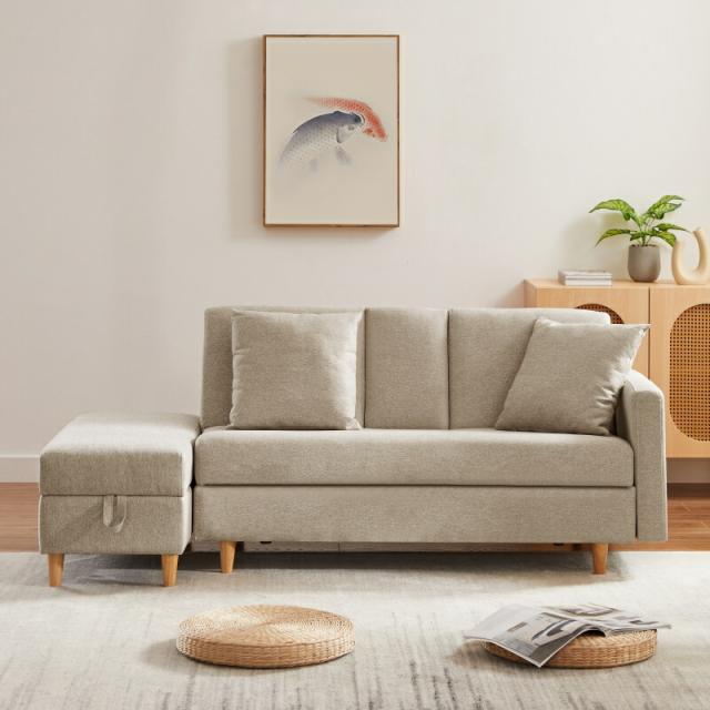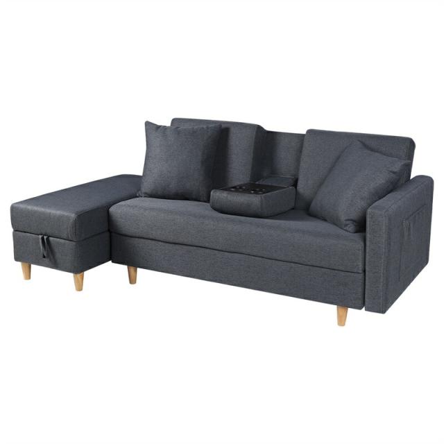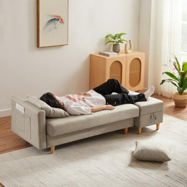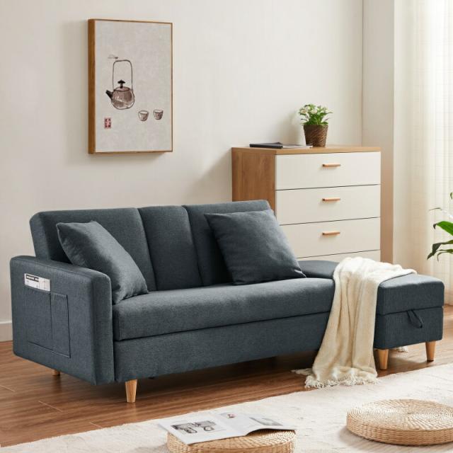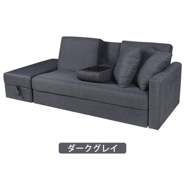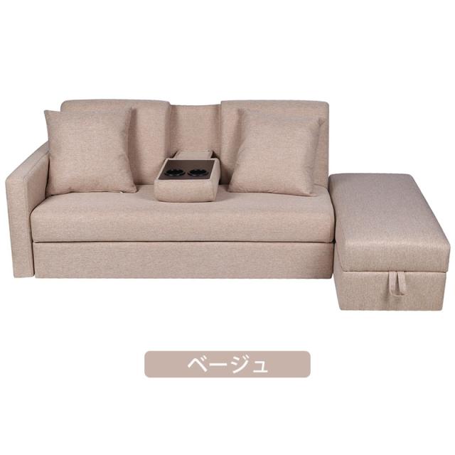 ソファ ソファーベッド カウチソファ 3人掛け オットマン付き 多機能ソファ 左右側とも取り付けるアームレスト たくさん収納 レイアウト自由 クッション2個