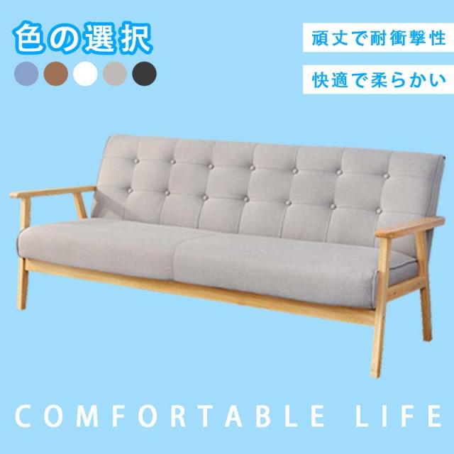 ソファ3人掛けファブリックソファレトロモダンノルディックスタイル天然木5色ご用意