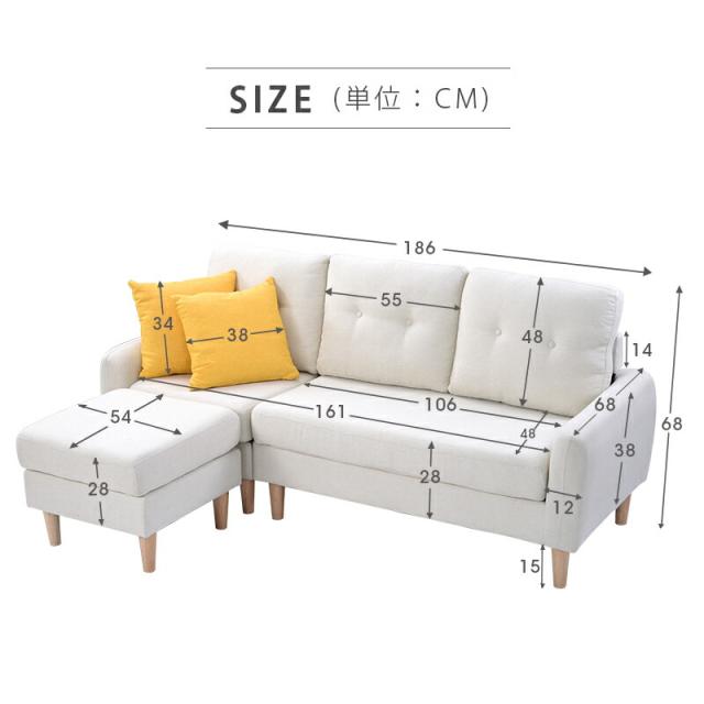 ソファー 3人掛け ソファベッド カウチ L字 コーナー ローソファ 北欧 天然木脚 高級ソファー ソファ ダイニングソファー 自由レイアウト おしゃれ ソファー 可愛い 快適 肘付き 三人掛けソファー クッション付 オットマンスツール