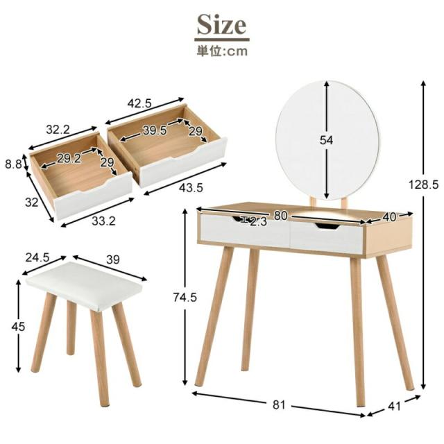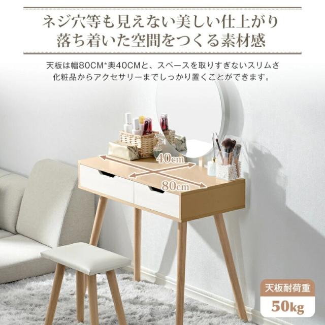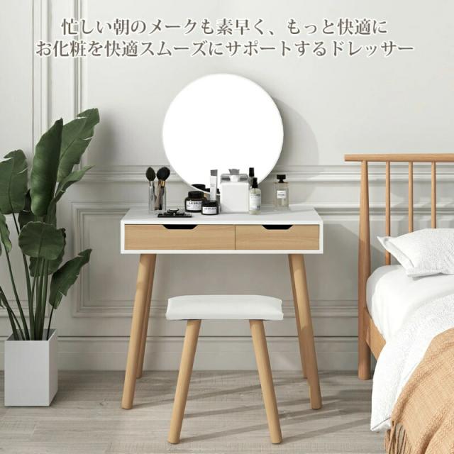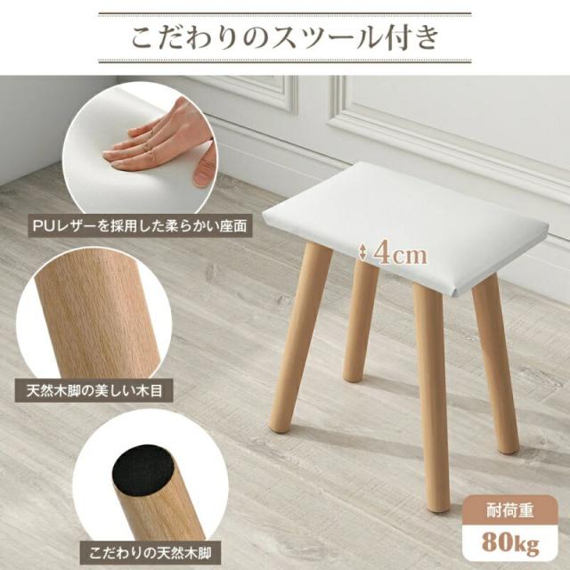 ドレッサー 化粧台 コンパクト デスク スツール付き 収納 可愛い おしゃれ メイク台 化粧台 メイクボックス コスメ収納 メイク 収納ボックス 机 椅子 北欧 鏡台 姫 幅80cm ホワイト 白 ナチュラル