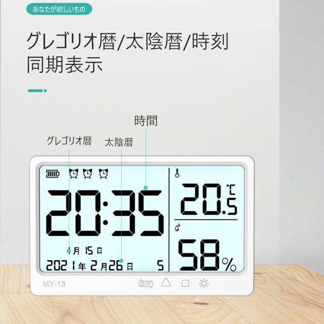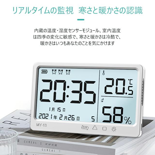 デジタル湿度計 デジタル時計 温度計室内室外温湿度計
