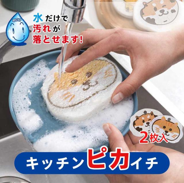 食器洗い スポンジ キッチンピカイチ びっくりフレッシュ 2枚セット 食器用タオル 吸水スポンジ 圧縮木材パルプスポンジ 漫画木材パルプ綿食器洗い吸収性膨張 キッチン用 お風呂用 台