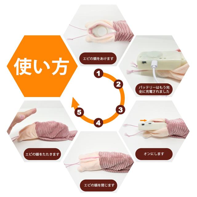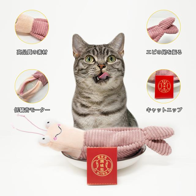 猫おもちゃ 猫電動おもちゃ 猫 けりぐるみ エビ またたび入り キャットニップおもちゃ 爪磨き 噛むおもちゃ センサー付き ストレス解消 USB充電 MIJEE
