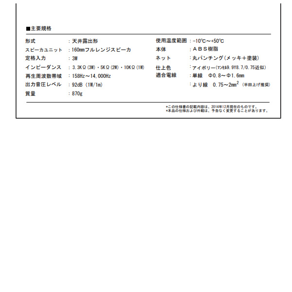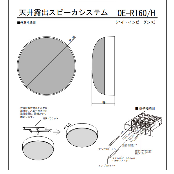 | 公称インピーダンス | OE-R160:8Ω / OE-R160/H:3.3kΩ(3W)/5kΩ(2W)/10kΩ(1W) /OE-R160/HAT:10kΩ(1W) |