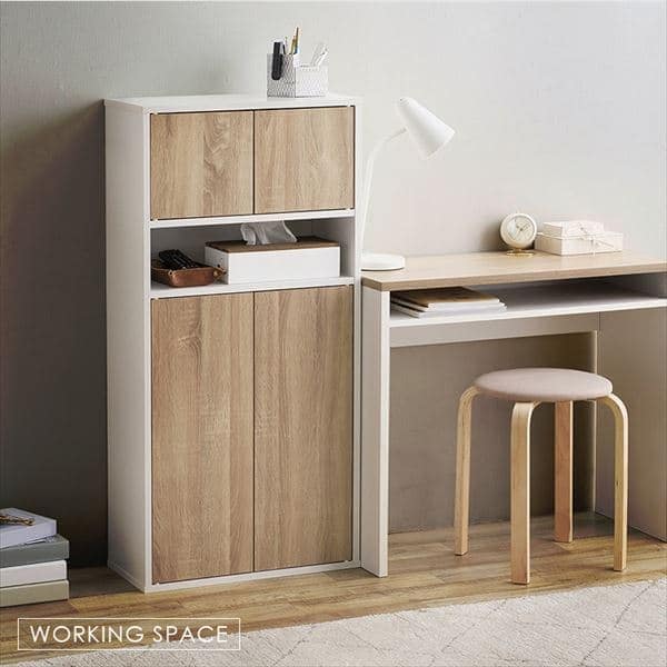生活感を「隠す」扉収納と、オープンスペースで「魅せる」収納で、機能性と見た目のキレイさが両立できます。