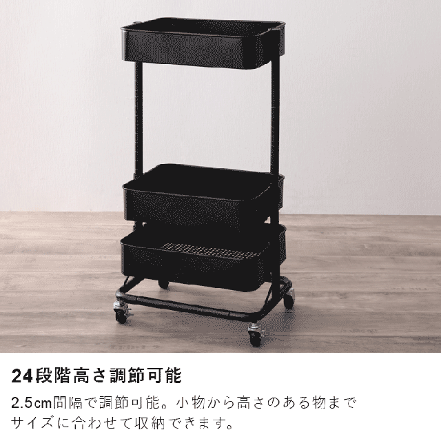 また収納スペースを24段階調節できるので、小物から高さのあるものまで幅広く収納できます。