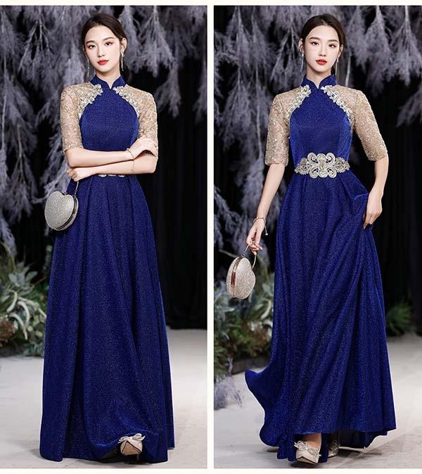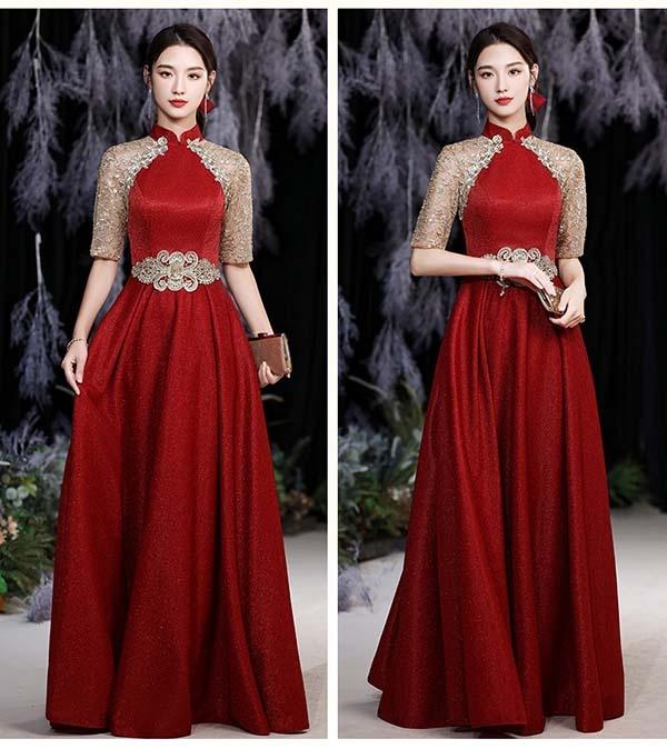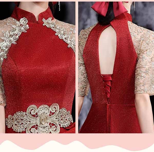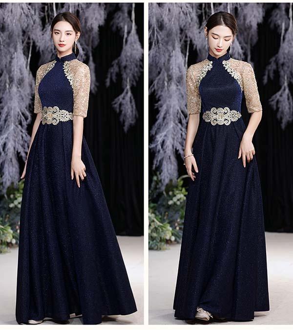 ドレス レディース パーティードレス ロングドレス 編み上げ 5分袖 袖あり ハイネック チャイナ 刺繍 キラキラ 透け感 発表会 成人式 結婚式 ワンピース 花嫁 二次会 ピアノ発表会 演奏会 披露宴ドレス 小さいサイズ お呼ばれ 上品 XS S M L XL 2XL da083x1x1la