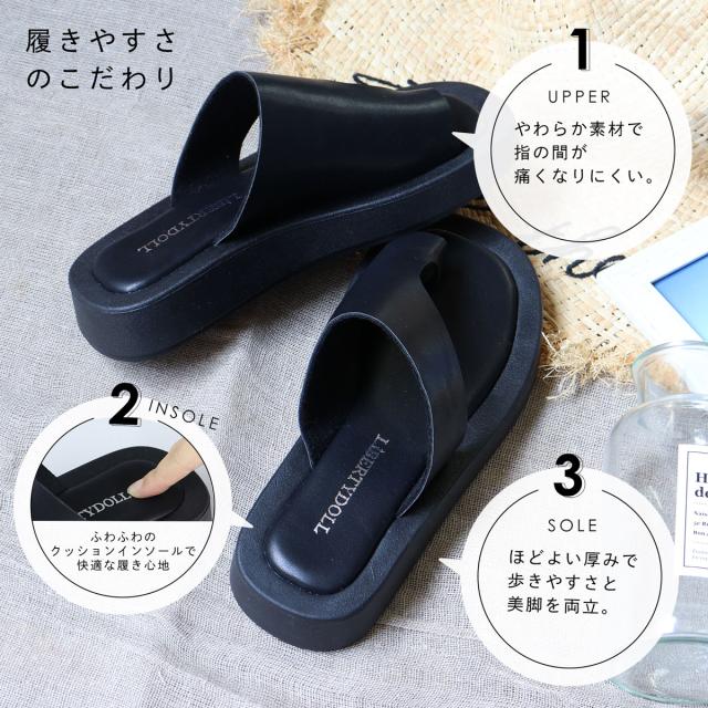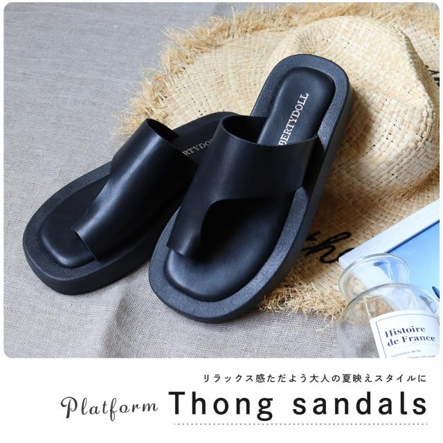 サンダル レディース トング 親指 つっかけ 履きやすい 歩きやすい 厚底 ボリューム 3.5cmヒール No.4162 22.5cm〜24.5cm 黒 ブラック 白 ホワイト LiBERTYDOLL リバティードール