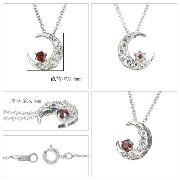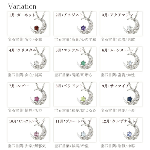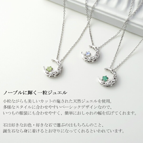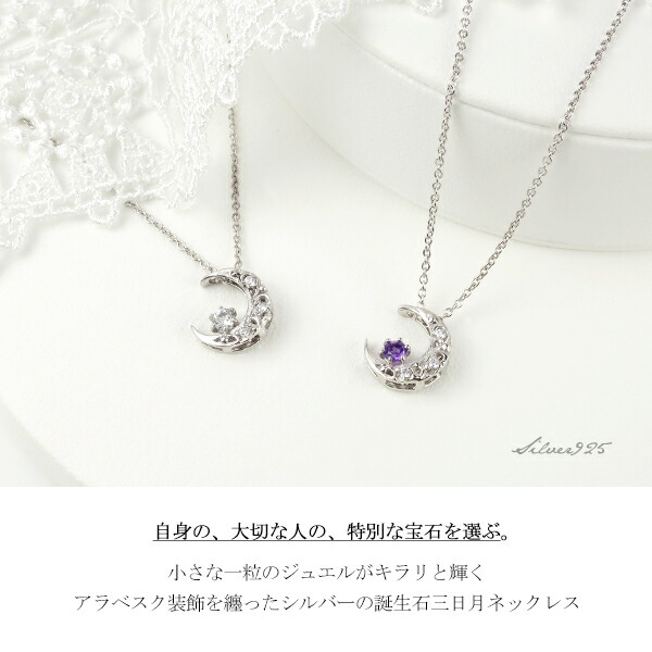 ロジウムコーティング シルバー925 クレセントムーン 誕生石ネックレス
