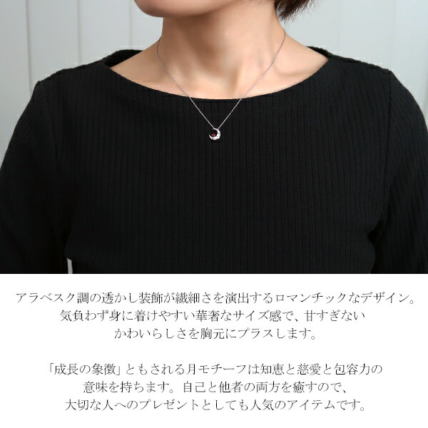 選べる 誕生石 ロジウムコート シルバー925 三日月 ネックレス アラベスク 華奢 一粒 小さめ シルバーネックレス ペンダント レディース