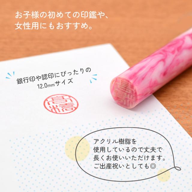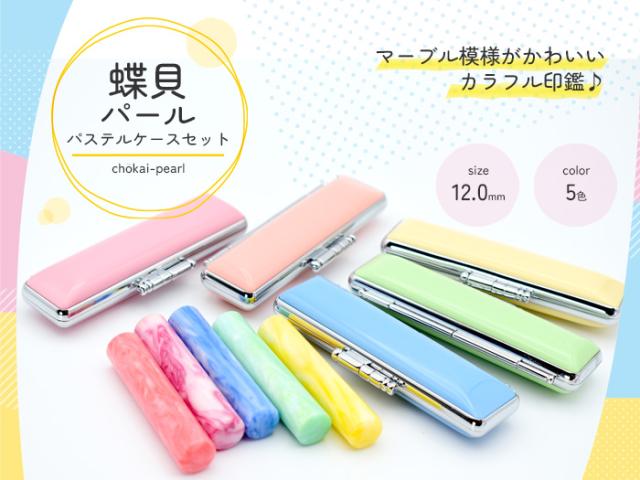 女性 印鑑 かわいい はんこ 子供 銀行印 蝶貝パール パステルケース 印鑑ケースセット 12.0mm 認印 ハンコ (HK050) 判子 名前 おしゃれ 可愛い 赤ちゃん ケース付き