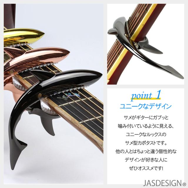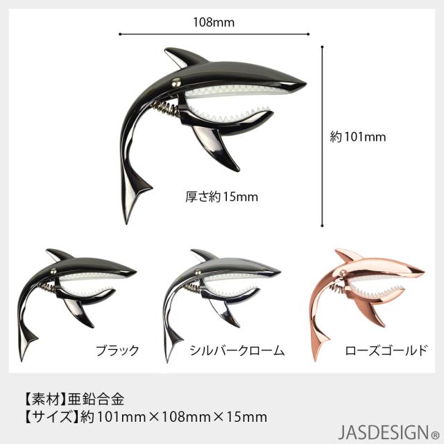 ギター カポタスト ギターカポ サメ アコースティック エレキ アコギ ワンタッチ バネ式カポ ウクレレ ベース おしゃれ 可愛い お洒落 かわいい 格好良い おもしろ 面白い シャーク サメ型 シャーク型 鮫 メタリック 送料無料 JM-223