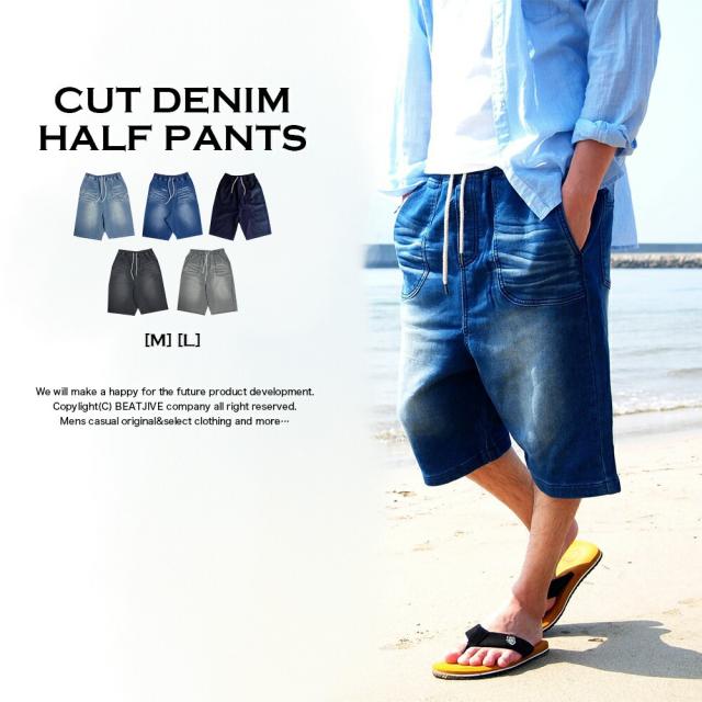 ハーフパンツ メンズ 膝下 五分丈 カットデニム 短パン スウェットパンツ サルエルパンツ ショートパンツ ショーツ メンズ カットデニム ジーンズ ワイド ガウチョパンツ イージーパンツ ストレッチ ストリート 春 夏 秋 冬 大きいサイズ