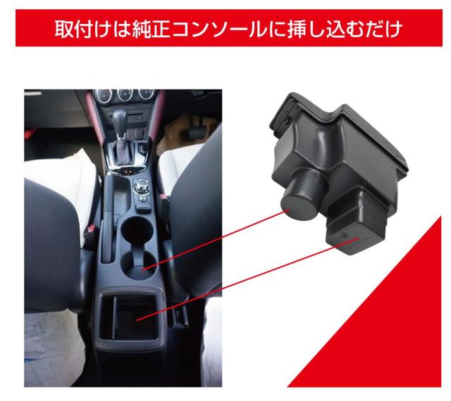 ・CX-3車種専用設計。純正のコンソール・ドリンホルダーを利用して設置できるアームレストです。 ・シンプルでカッコいいブラックレザー×レッドステッチデザイン! ・本革で質感も高く使い心地も抜群です。 ・純正のコンソールに挿し込むだけの超簡単取付! ・電源を接続すれば充電等に使用できる便利なUSBポートも増設出来ます。 ・中間トレイはスマホ等を収納するのに便利な薄型で、コインケースも完備しています。 |