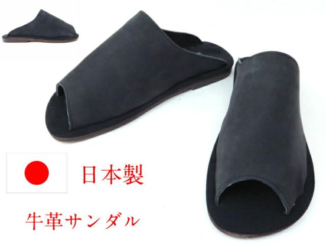 メンズ牛革サンダル G1600 ブラック(BK) 紳士 メンズ オフィス履き ツッカケ モード スリッパ 天然皮革 レザー 牛革 アイランド日本製