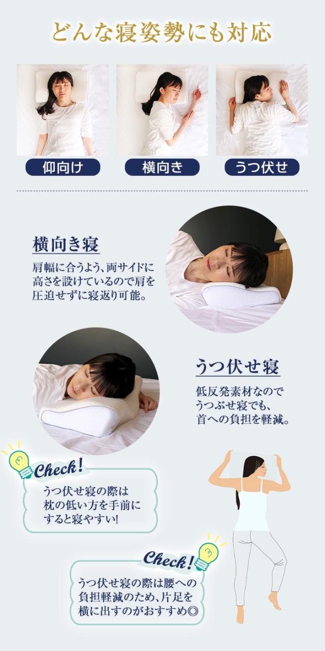 仰向け・横向き寝、うつ伏せ寝に対応しています。
