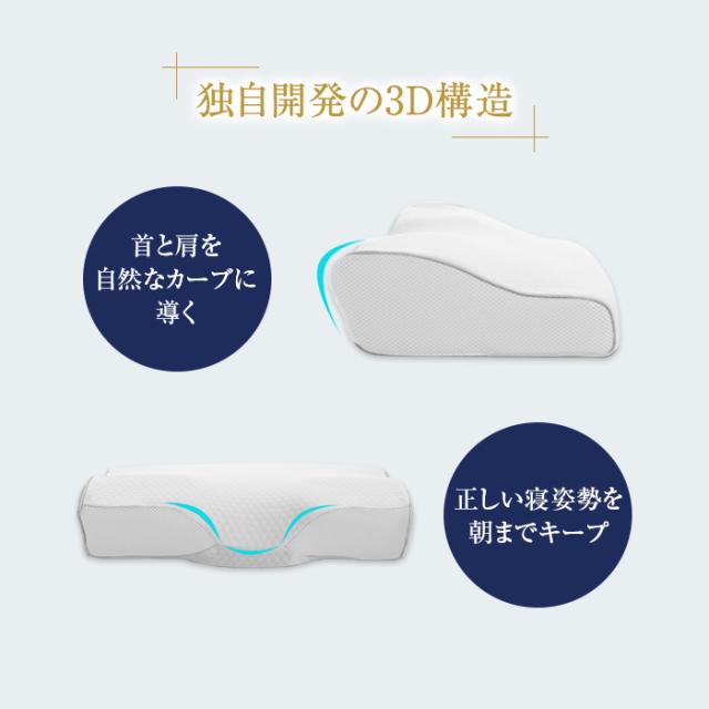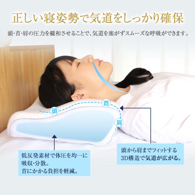 独自開発の3D構造により、頭・首・肩の圧力を緩和させることで、気道を塞がずスムーズな呼吸ができます。
