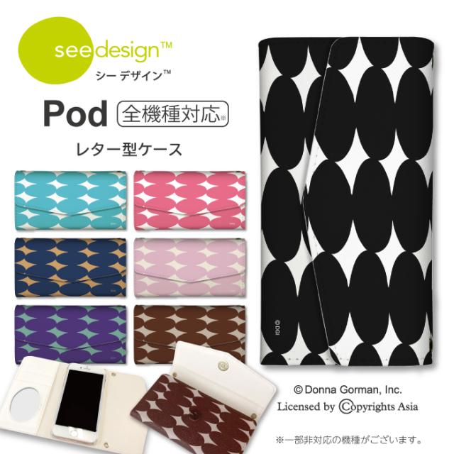 スマホケース 手帳型 全機種対応 鏡付き ミラー付き 北欧 see design シーデザイン Android AQUOS sense6 SHG05 wish SHG06 iPhoneSE3 ケース Pod ドット柄 北欧タイプ ショルダー おしゃれ 大人可愛い 送料無料