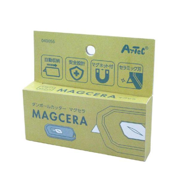 ダンボールカッター Magcera 段ボールカッター 自動収納機能付 安全設計 マグネット付 セラミック刃 オフィス 事務 便利 アーテック 40056