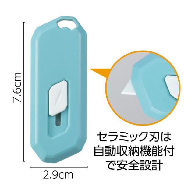 セラミック刃は自動収納機能付で安全設計。マグネット付き。