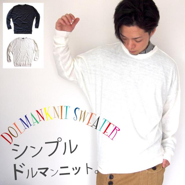 9212-5342B ドルマンニット メンズ シンプル カジュアル ビッグシルエッ セーター ビッグサイズ ドルマンスリーブ ドルマンセーター フィッシャーマンニット アランニット ゆるニット カットソー リブニット
