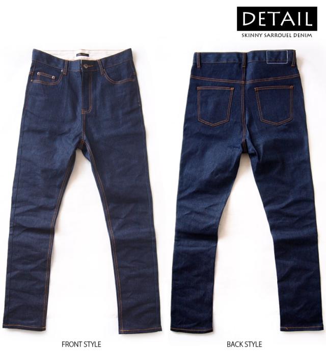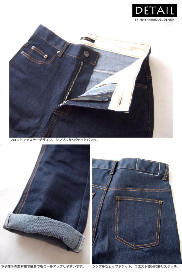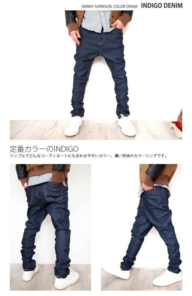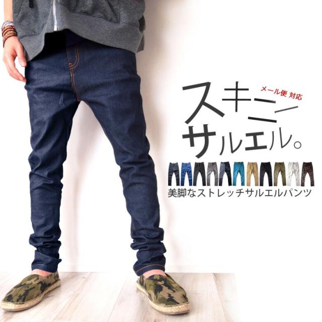 ストレッチ素材のスリムフィットサルエルパンツ。