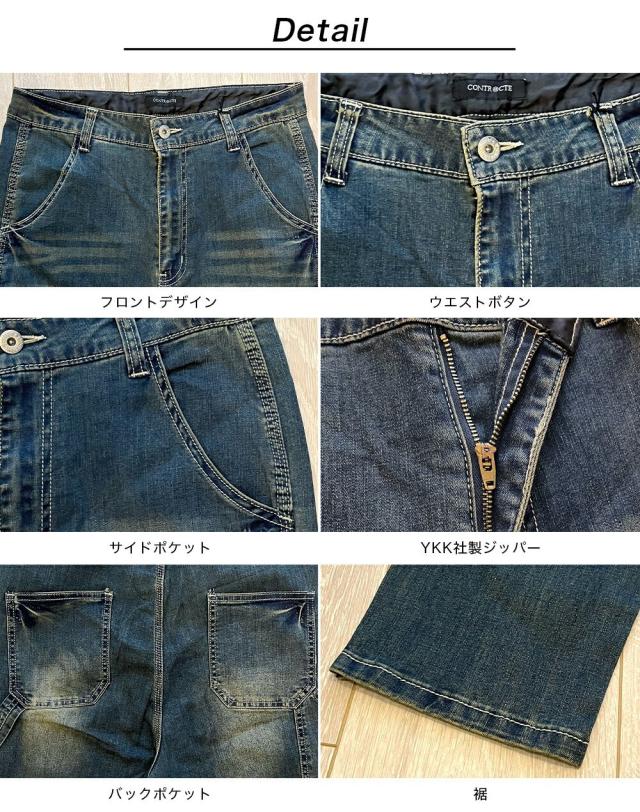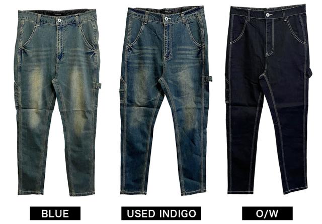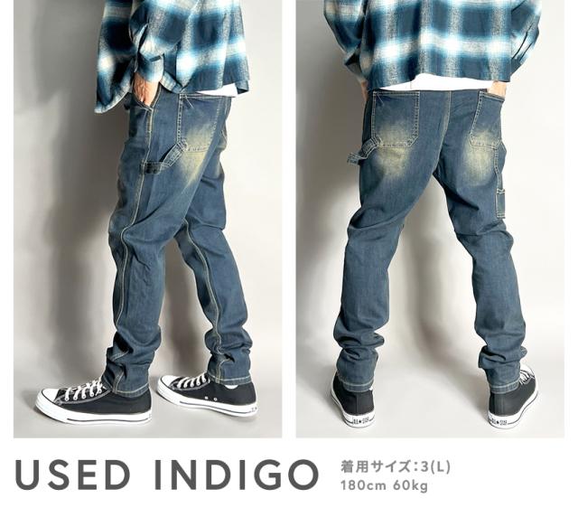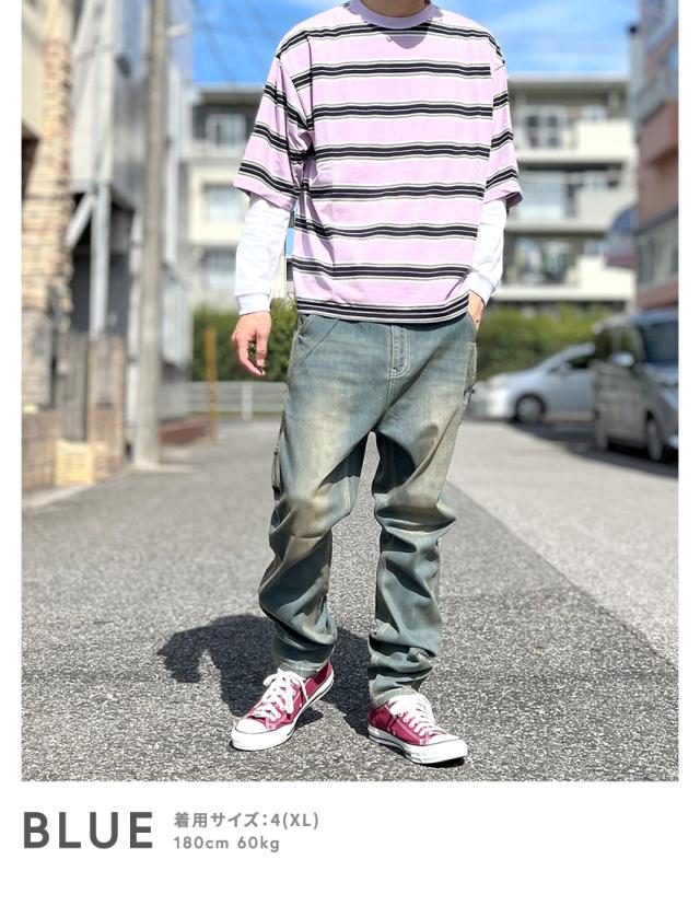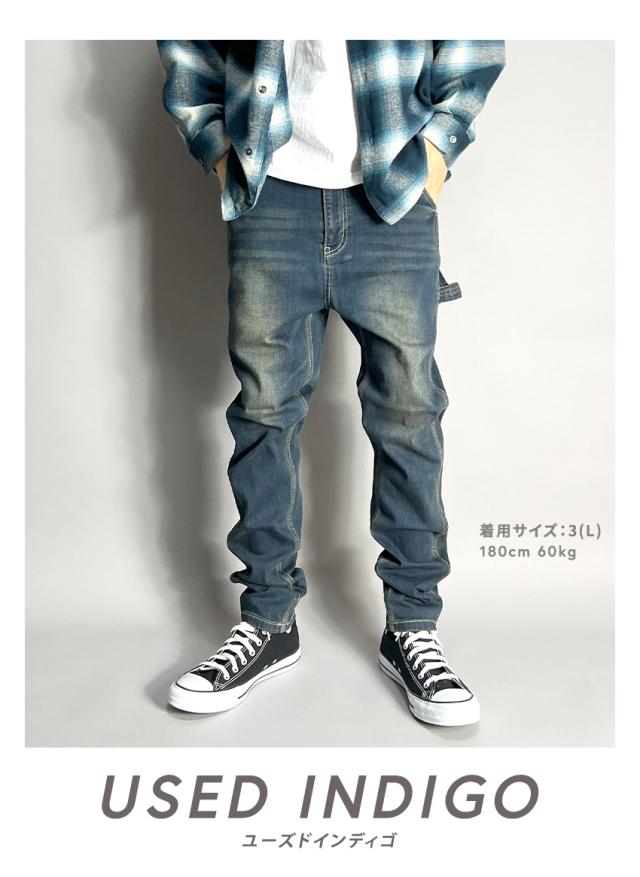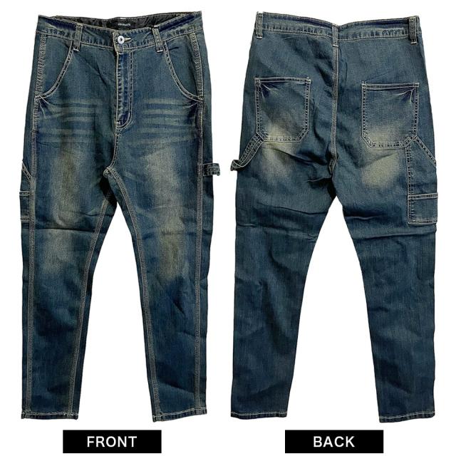 デニムパンツ メンズ ペインターパンツ サルエルパンツ デニム ストレッチ テーパード スキニーパンツ ワークパンツ ちょいサルエルパンツ ビンテージ加工 USED加工 作業着 30代 40代 50代 春 夏 秋 冬