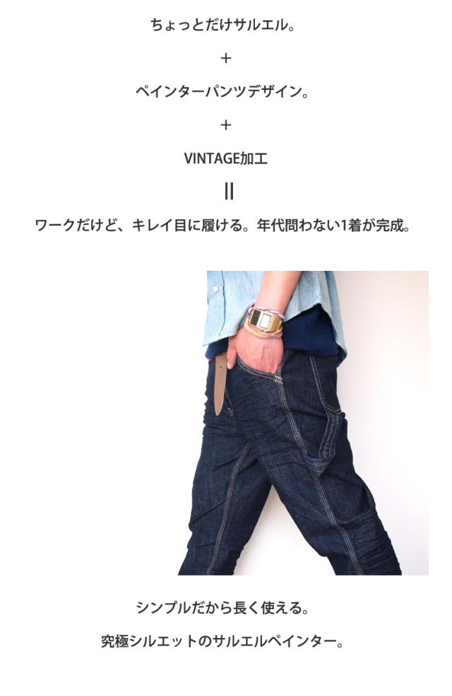 太くて無骨な印象が強いペインターパンツですが、細身+サルエルシルエットでキレイめに、でもワークな雰囲気のパンツに仕上がりました。