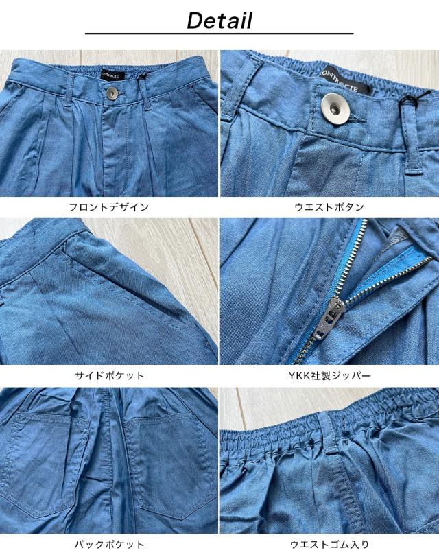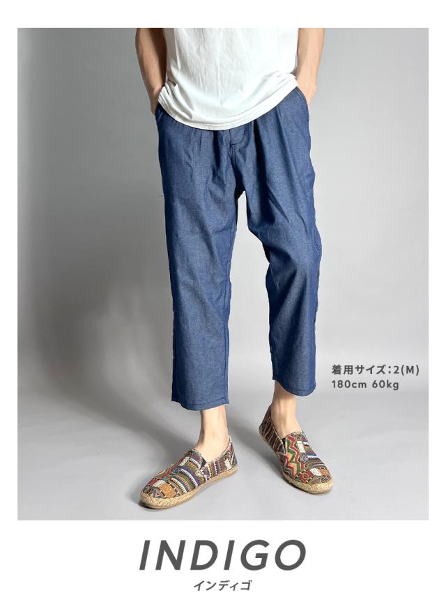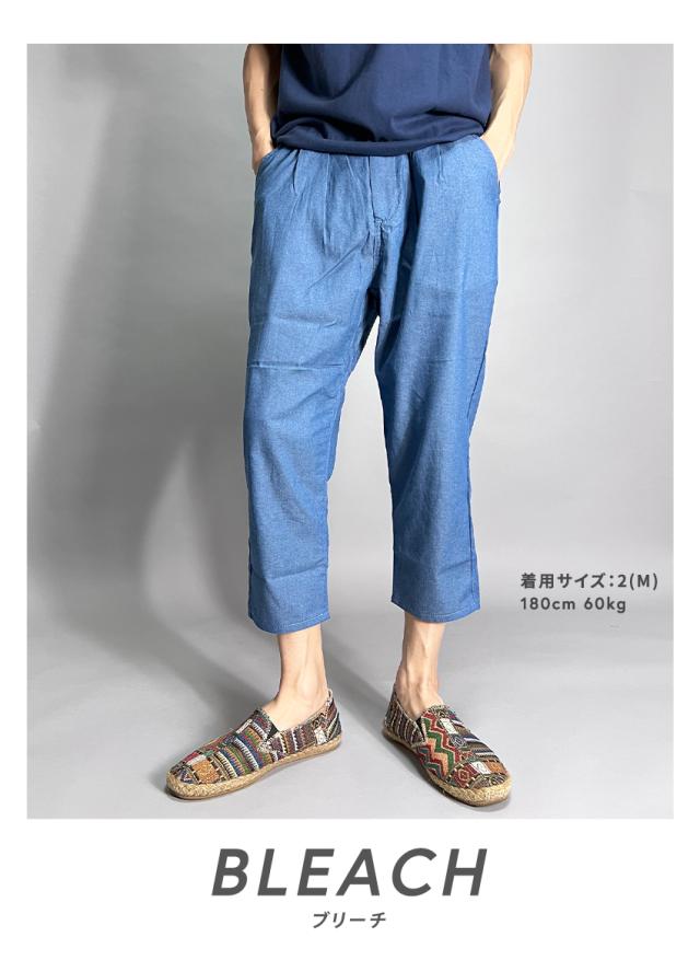 クロップドパンツ メンズ 涼しい 接触冷感 シャンブレー デニム スラックス アンクルパンツ 9分丈 シェフパンツ ワイドシルエット タックデザイン テーパード メンズサルエルパンツ ワイドパンツ キレイめ ゆったり 春 夏 大きいサイズ