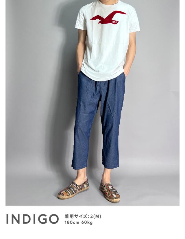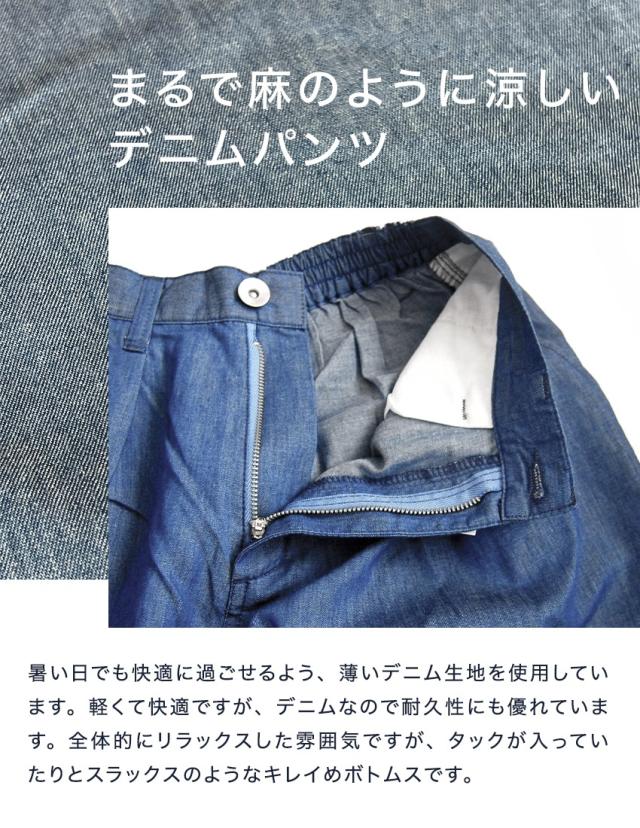 生地感はまるでリネンのような薄手のデニムを使用しています。