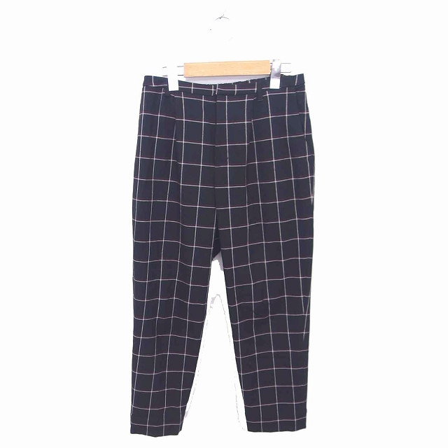 【中古】ナノユニバース nano universe テーパード チェック パンツ ジップフライ 36 ブラック 黒 /TT6 レディース