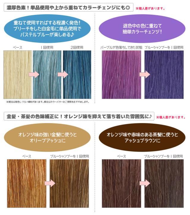 濃厚なブルーの色素で、ブルーヘアの『色キープ』の他、