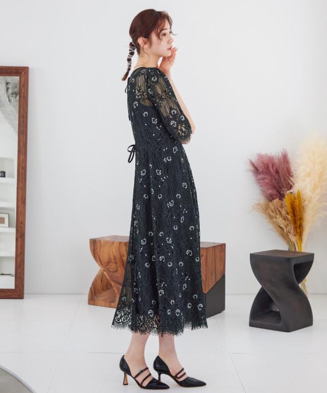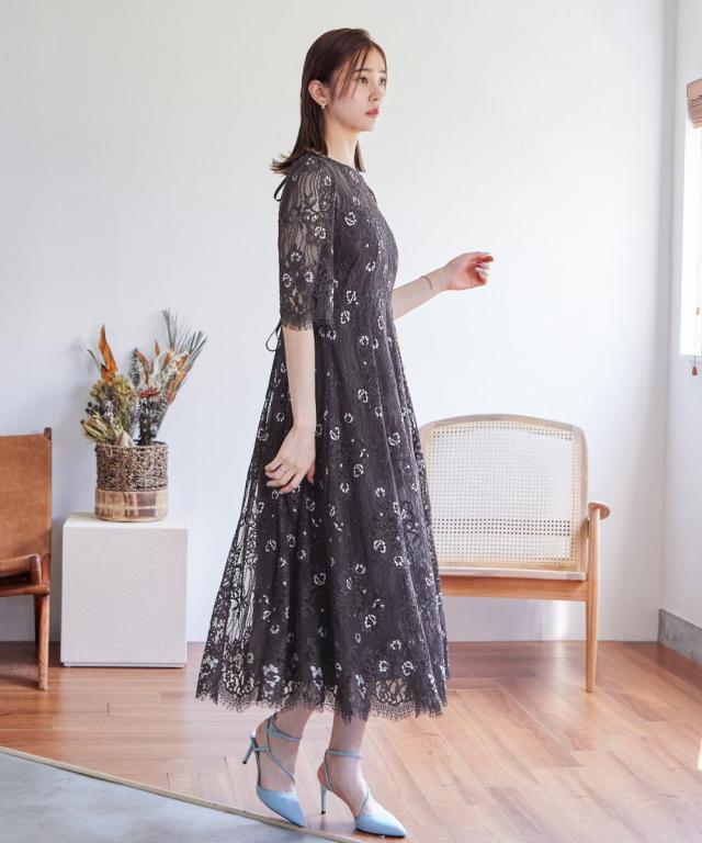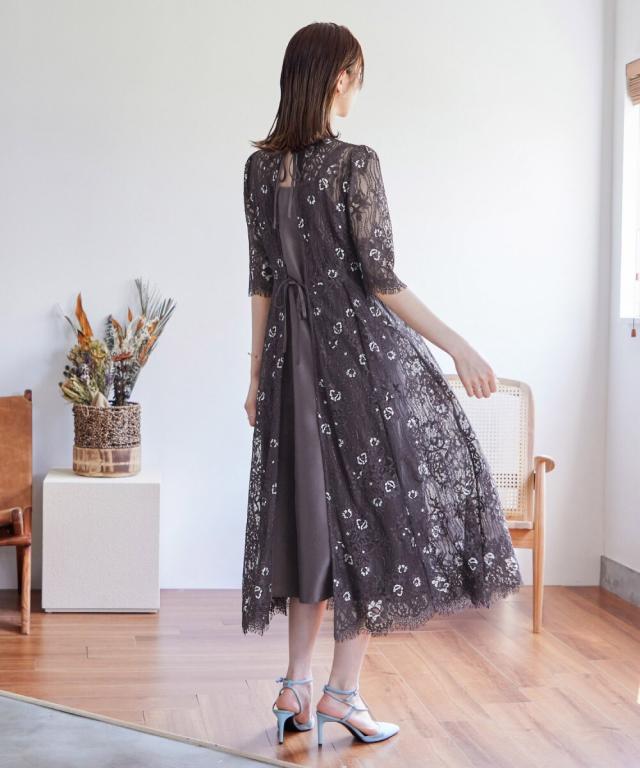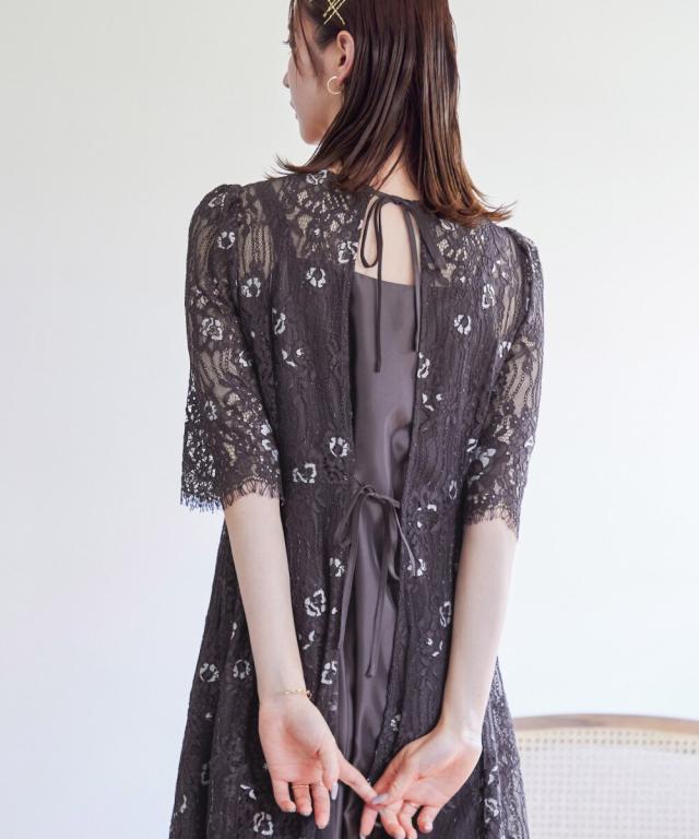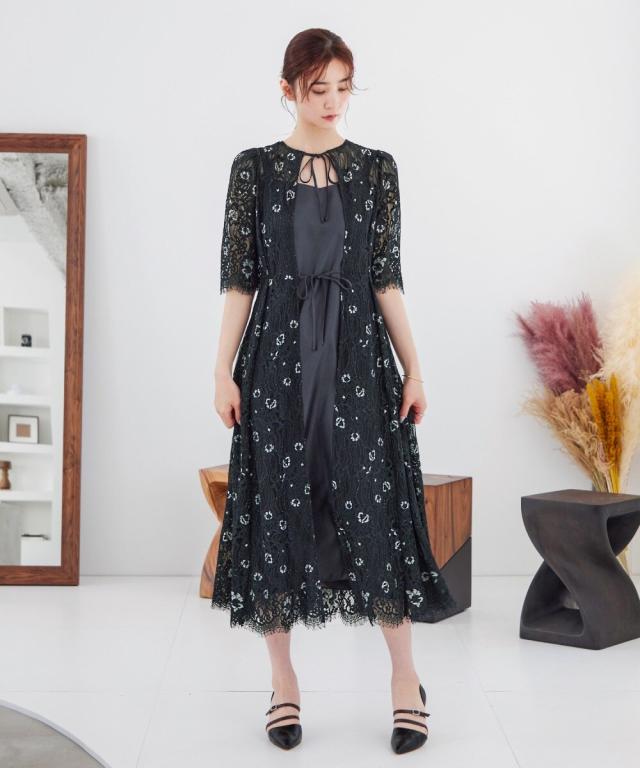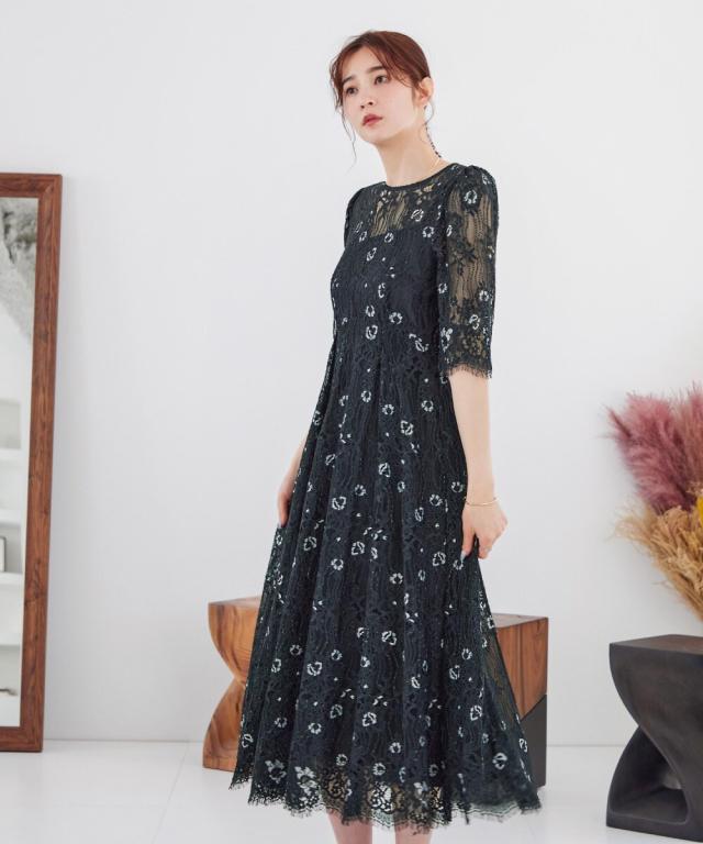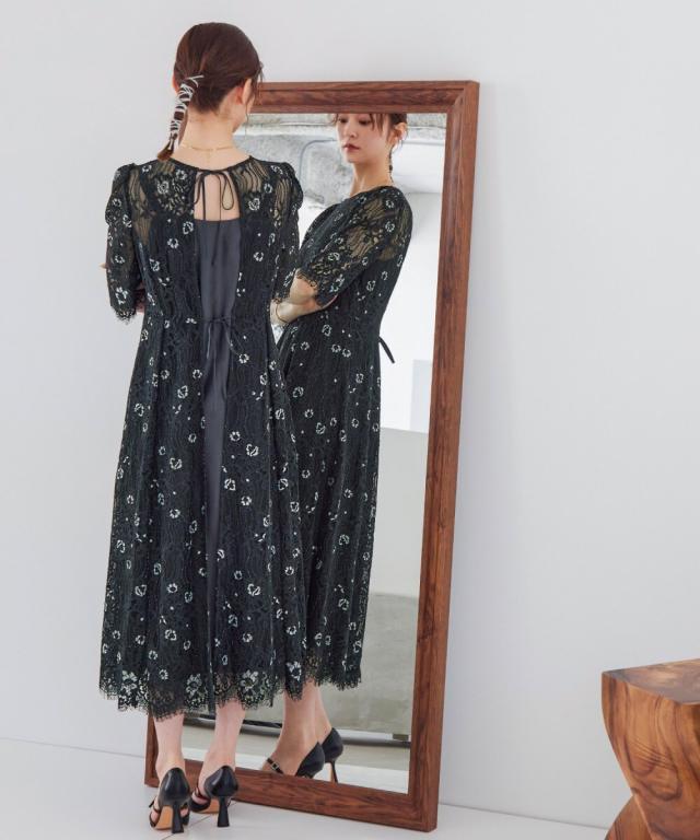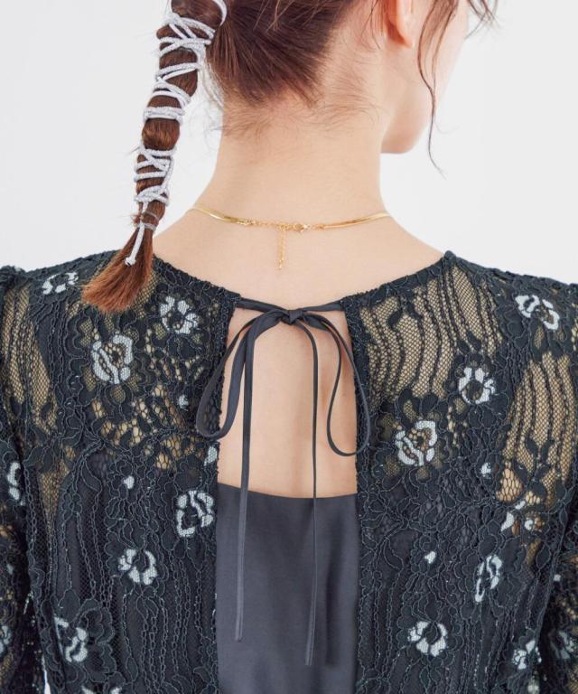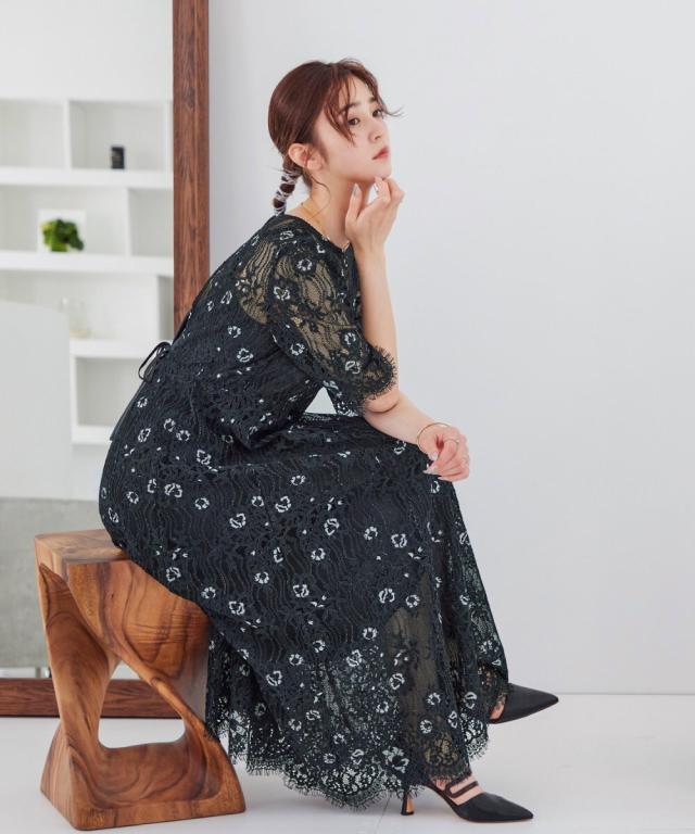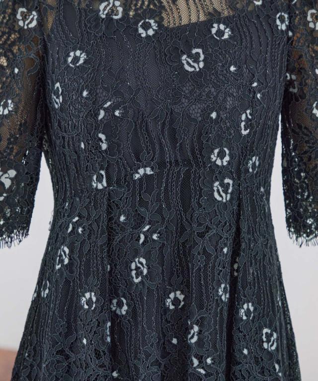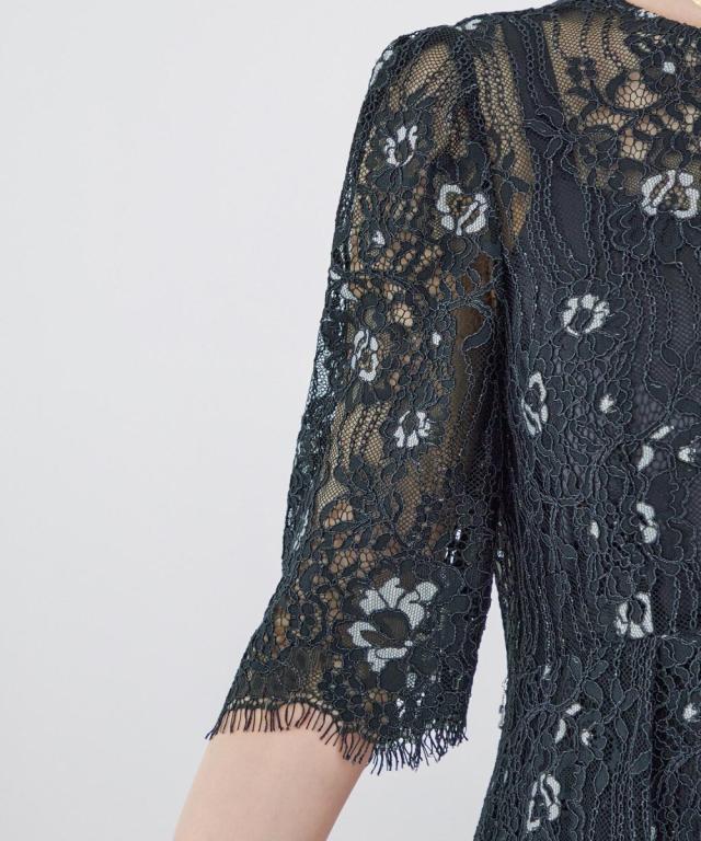 上品な配色レース素材がエレガンスな雰囲気を演出。