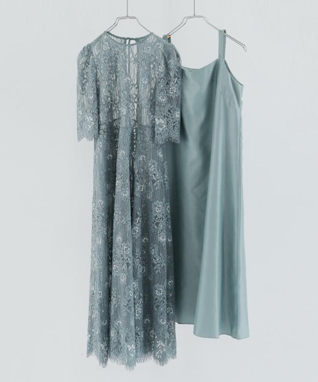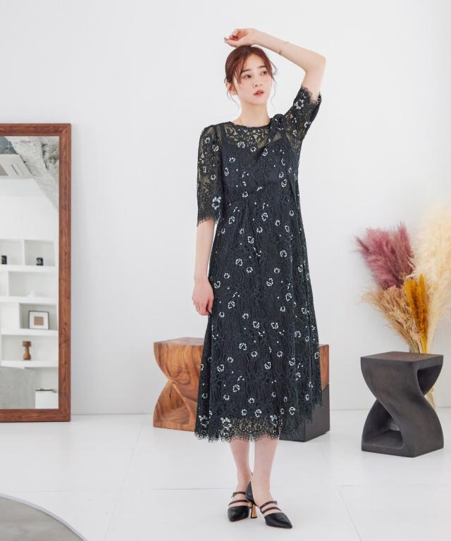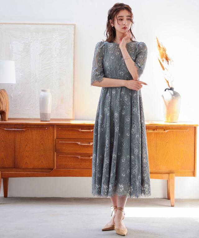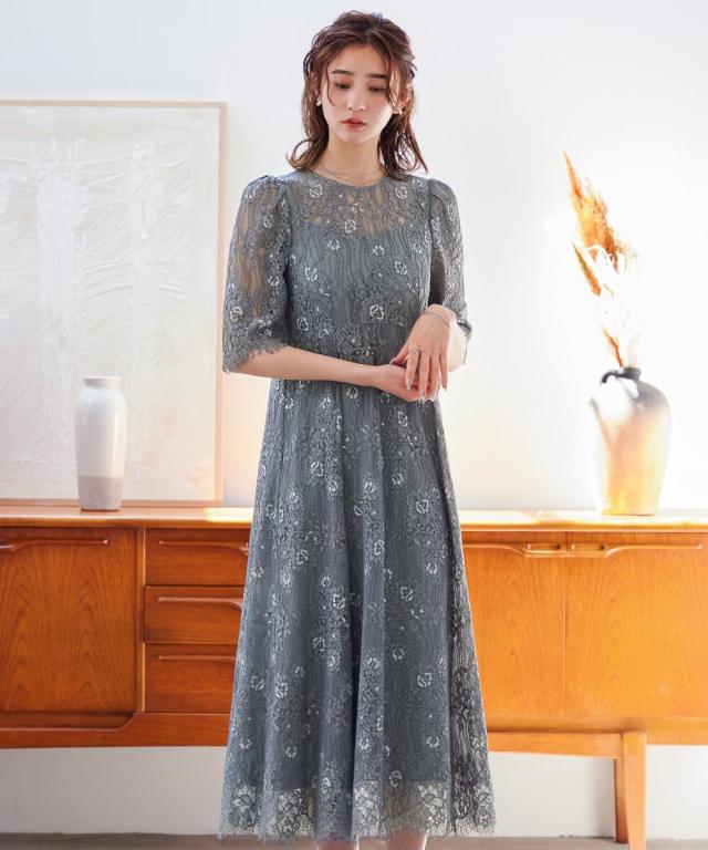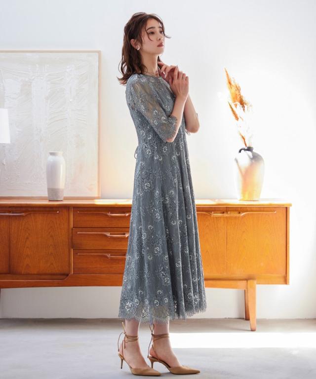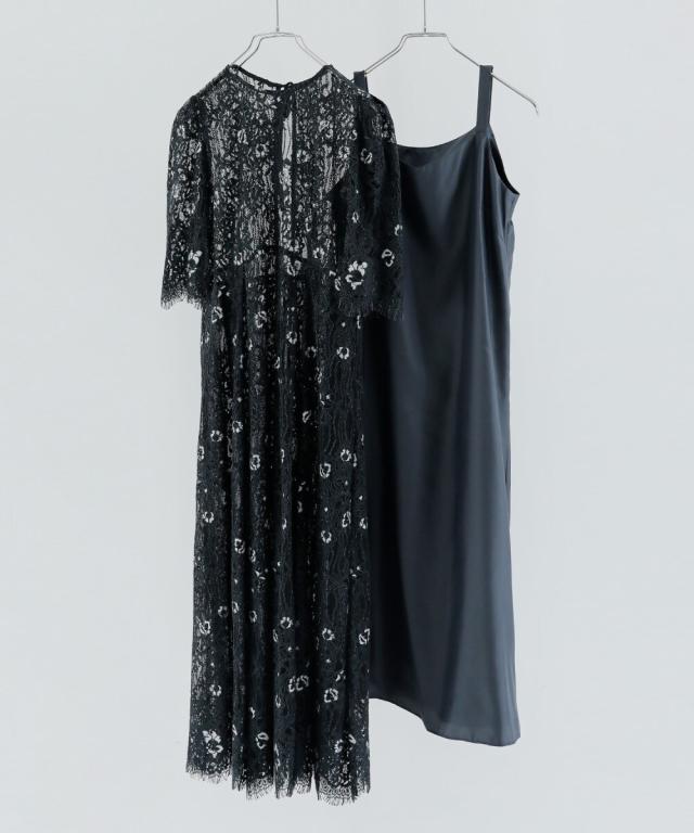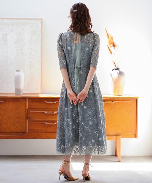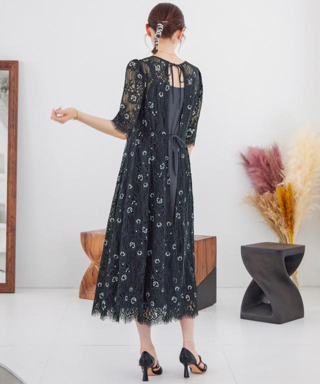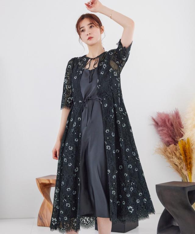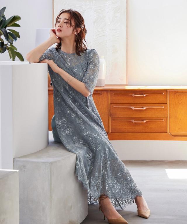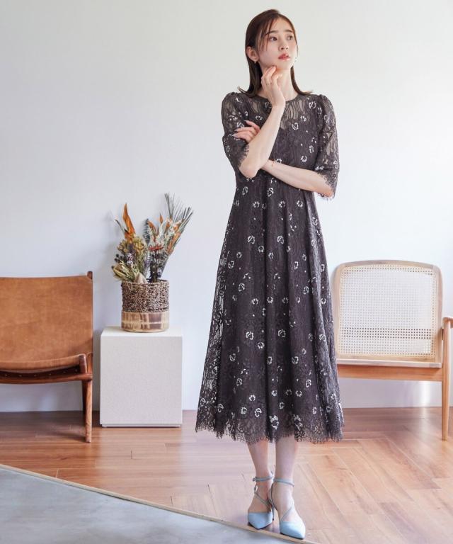 上品な配色レース素材がエレガンスな雰囲気を演出。