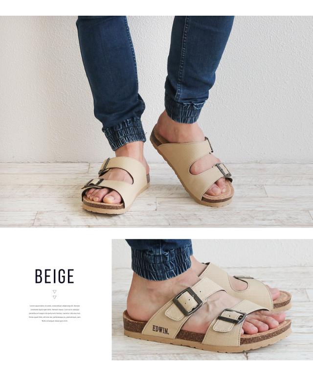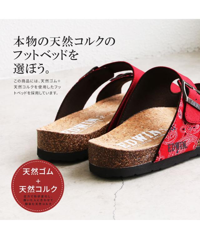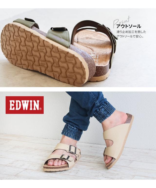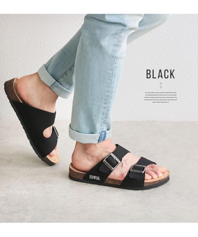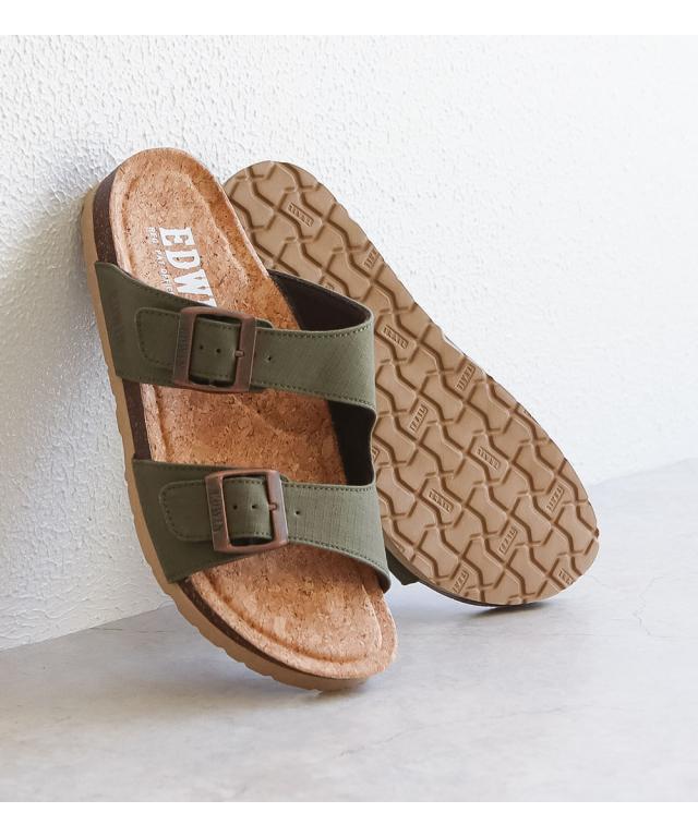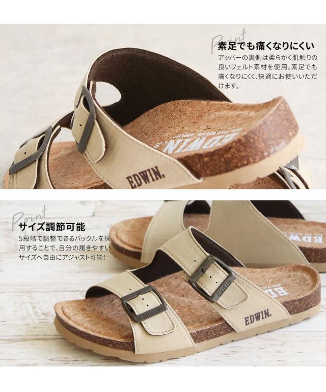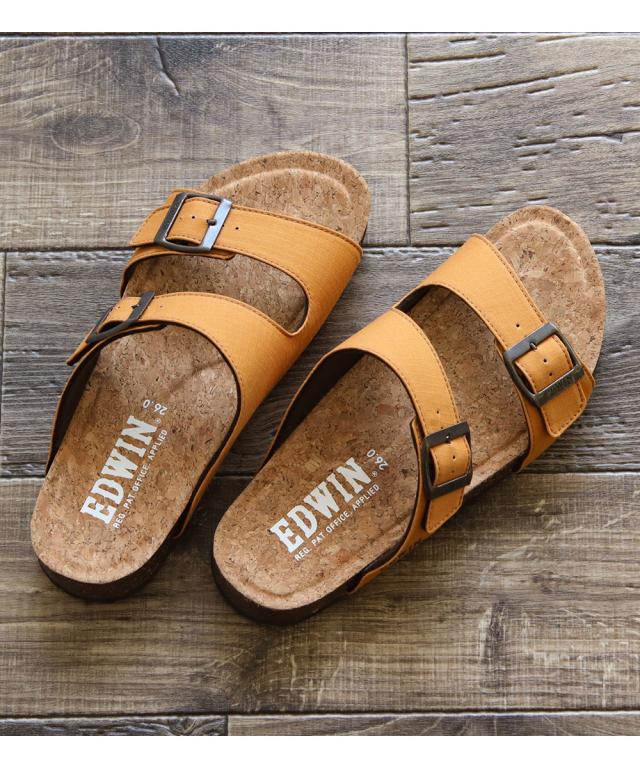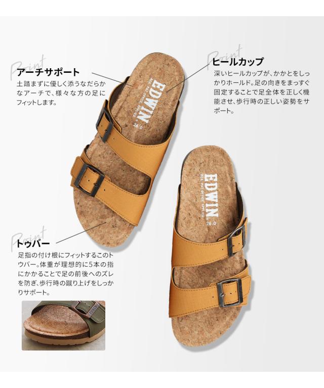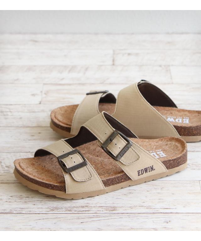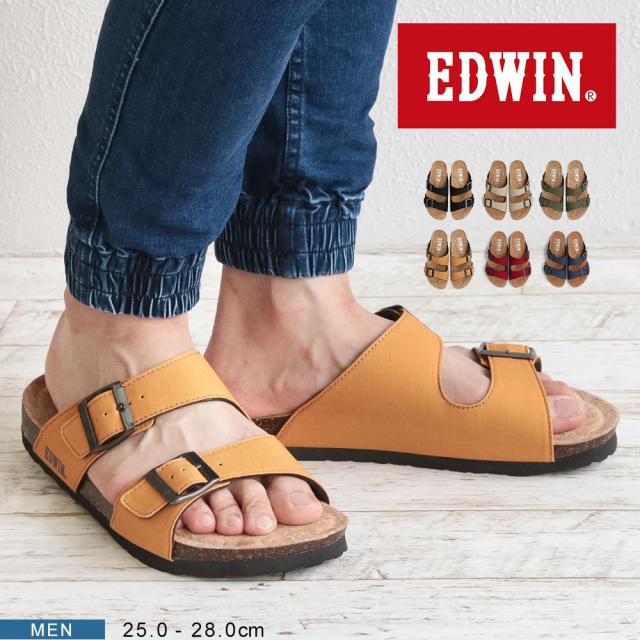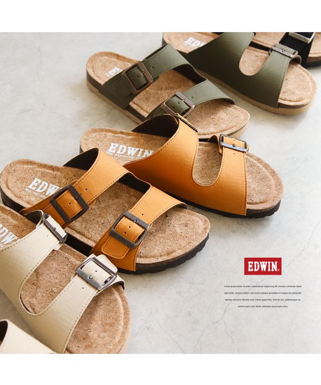 エドウィン コンフォートサンダル メンズ おしゃれ サンダル フットベッド アーチサポート カジュアル アメカジ ゆったり 幅広 疲れにくい 歩きやすい レジャー アウトドア コットン リップストップ 天然コルク ブラック マスタード アイボリー カーキ 9301