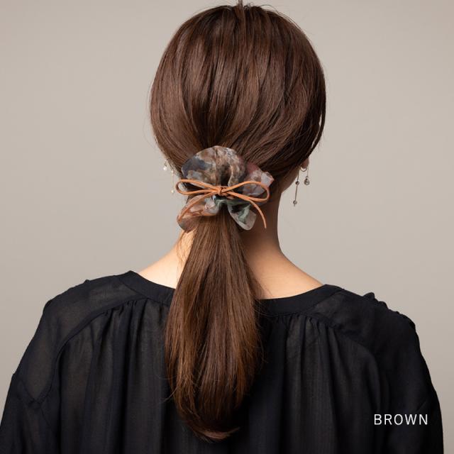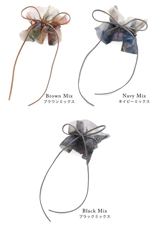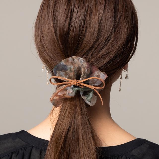ポニーフック ヘアカフ ヘアアクセサリー ヘアーフック レディース コード リボン 紐 巻きつけ ヘアアレンジ オーガンジー 花柄 フラワー 透け感 ギャザー シースルー まとめ髪 ポニーテール 結婚式 パーティー シンプル トレンド 可愛い