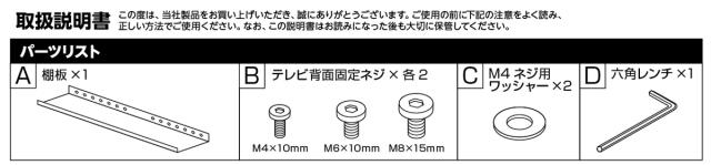 | 内容量 | 1台 付属品:六角レンチ、テレビ背面固定用ネジ、ワッシャー |