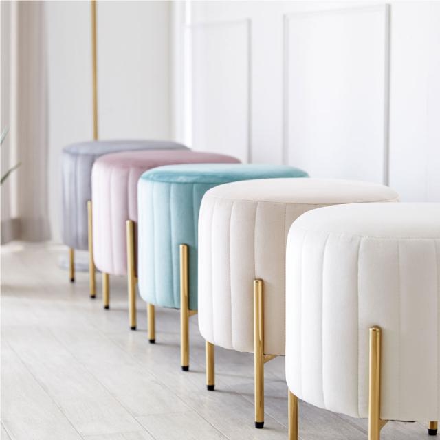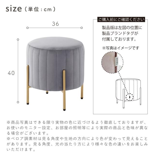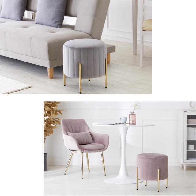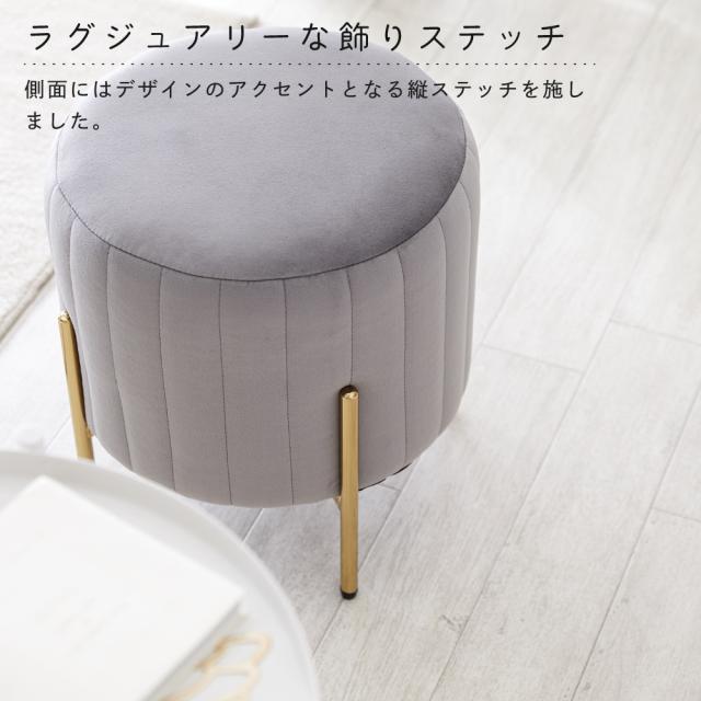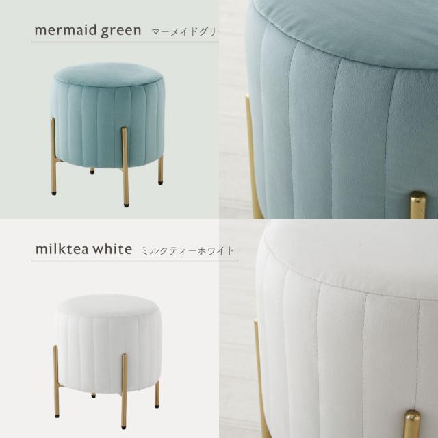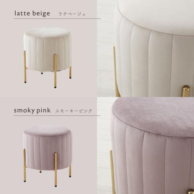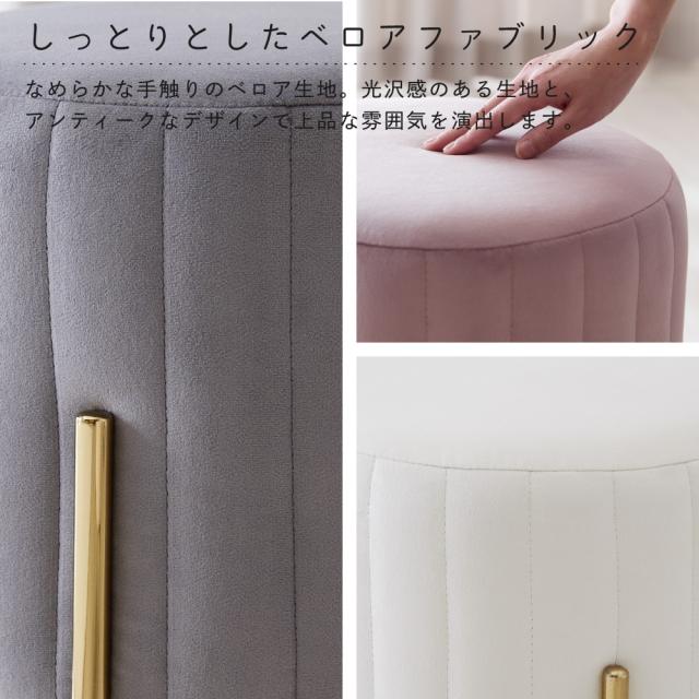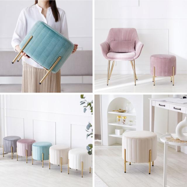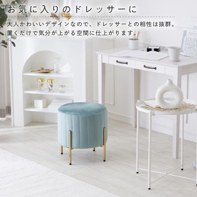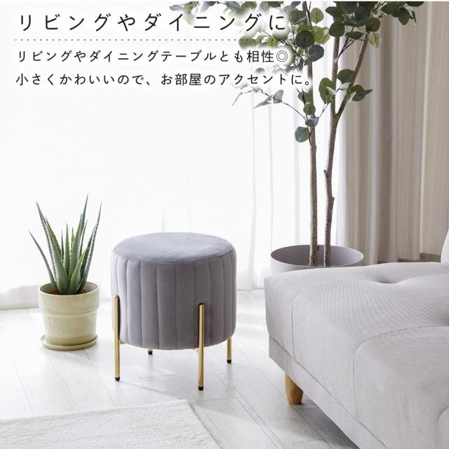 ■商品説明:人気のくすみカラーが大人かわいい金脚(ゴールド脚)スツールです。スツールや、来客用のサブチェア、メイク用チェアなどにおすすめです。ベロア生地で肌触りもよく、女性に人気のデザイン。サロンや飲食店など、法人の方・ショップ用としてもご好評です。