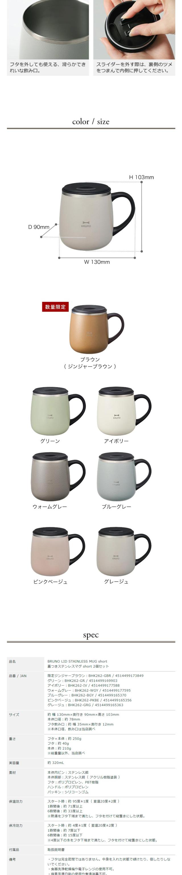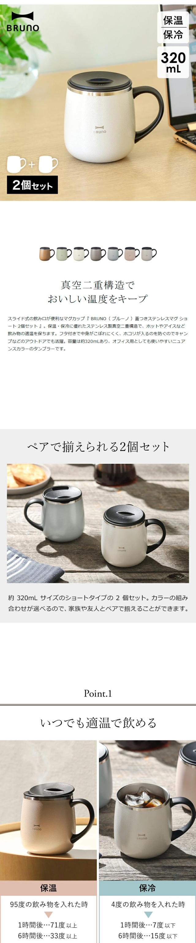 [ BRUNO 蓋つきステンレスマグ short 2個セット ]ブルーノ ステンレス マグ ペア マグカップ フタ付 蓋付き 保温 保冷 蓋付きマグカップ 北欧 320mL おしゃれ 真空断熱 タンブラー ギフト プレゼント かわいい BHK262【送料無料】