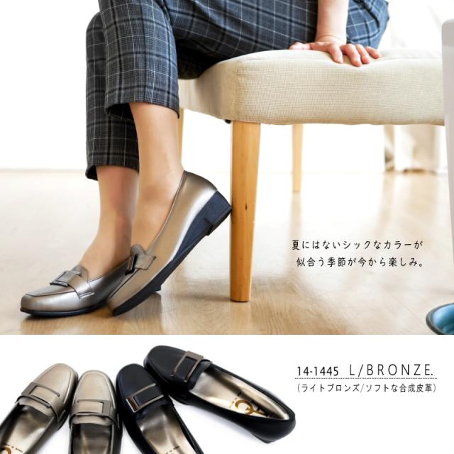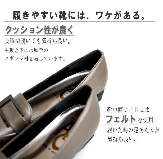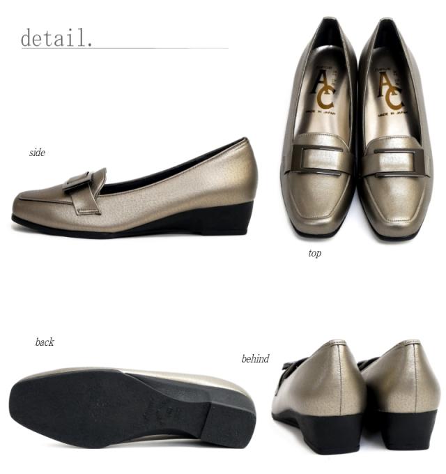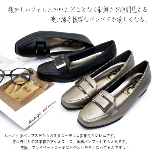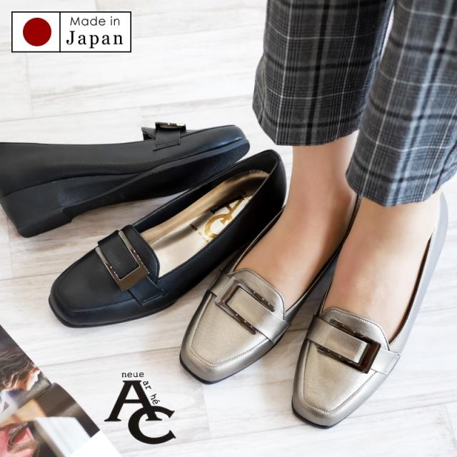 AC アミュエルコンセプト パンプス 靴 レディース バックル 日本製 軽い スクエアトゥ ウエッジソール 黒 ブロンズ フェイクレザー シック 屈曲 オフィス 卒入学 仕事 通勤 旅行 楽ちん 3e
