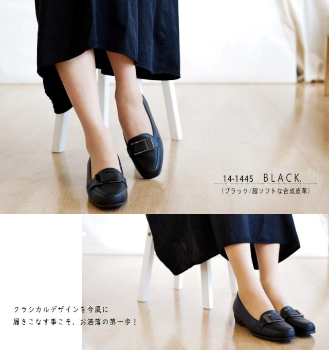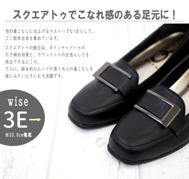 シンプルなバックルデザイン・スクエアトゥウエッジソールパンプス