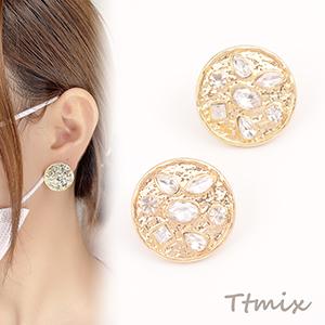 デザインピアス ラインストーン付き ラウンド 20mm ゴールド(2ヶ)