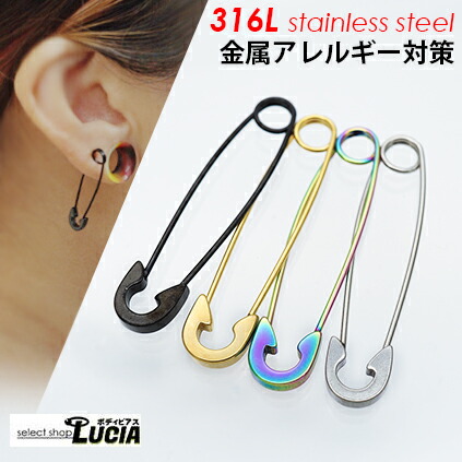 本日P2倍 安全ピン ピアス ボディピアス 20G 貫通 カラー 金属アレルギー対応 316L 高品質 ステンレス 軟骨ピアス