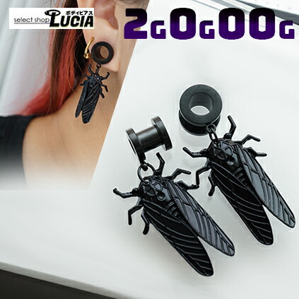 本日P2倍 2G 0G 00G ピアス ボディピアス 蝉 フレッシュトンネル プラグ セミ せみ 夏 揺れる ブラック 金属アレルギー対応 316L 高品質 ステンレス