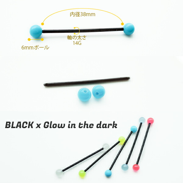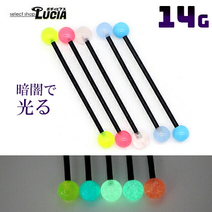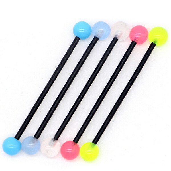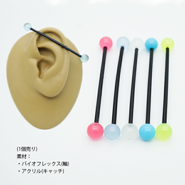 本日P2倍 14G ピアス ボディピアス インダストリアル ストレートバーベル ロングバーベル 光る ネオン カラー 可愛い 蓄光 バイオフレックス 繋ぐ 長い